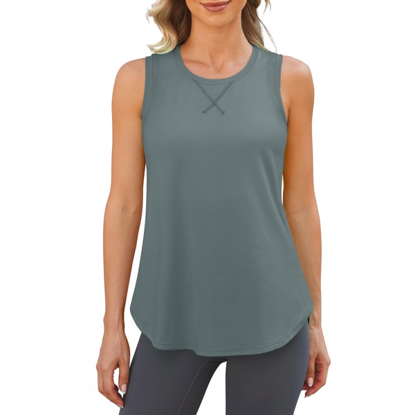 G4Free Workout Tank Tops Woman Loose Gym Athletic Top Sleeveless Yoga Pilates Shirts Summer Quick Dry Activewear (Gray,XL)