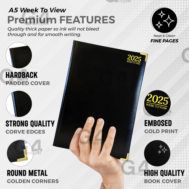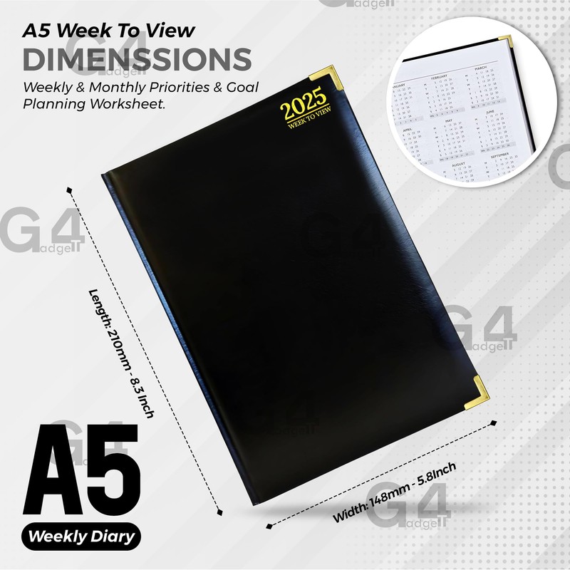 G4GADGET Luxury 2025 A5 Week to View Diary Hardback Cover 80GSM Paper for Business Office & Home A5