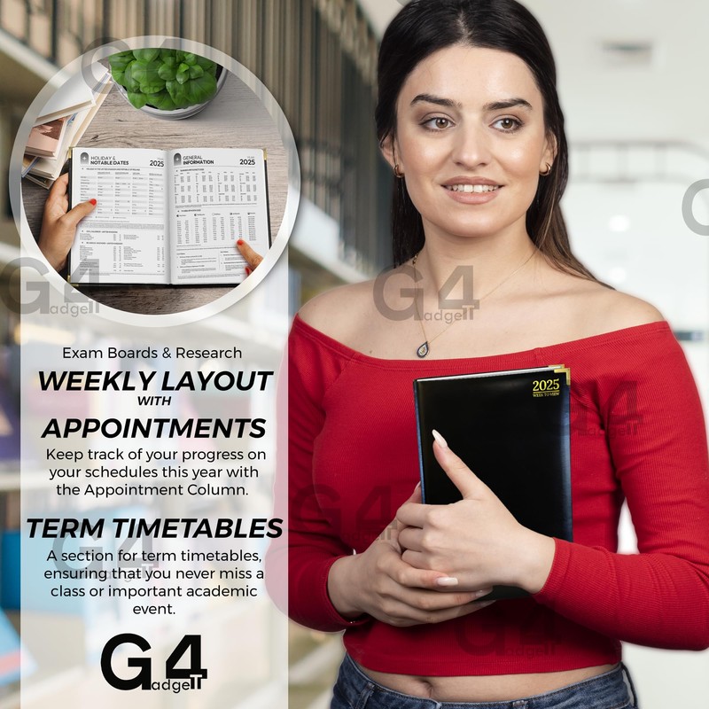 G4GADGET Luxury 2025 A5 Week to View Diary Hardback Cover 80GSM Paper for Bus...