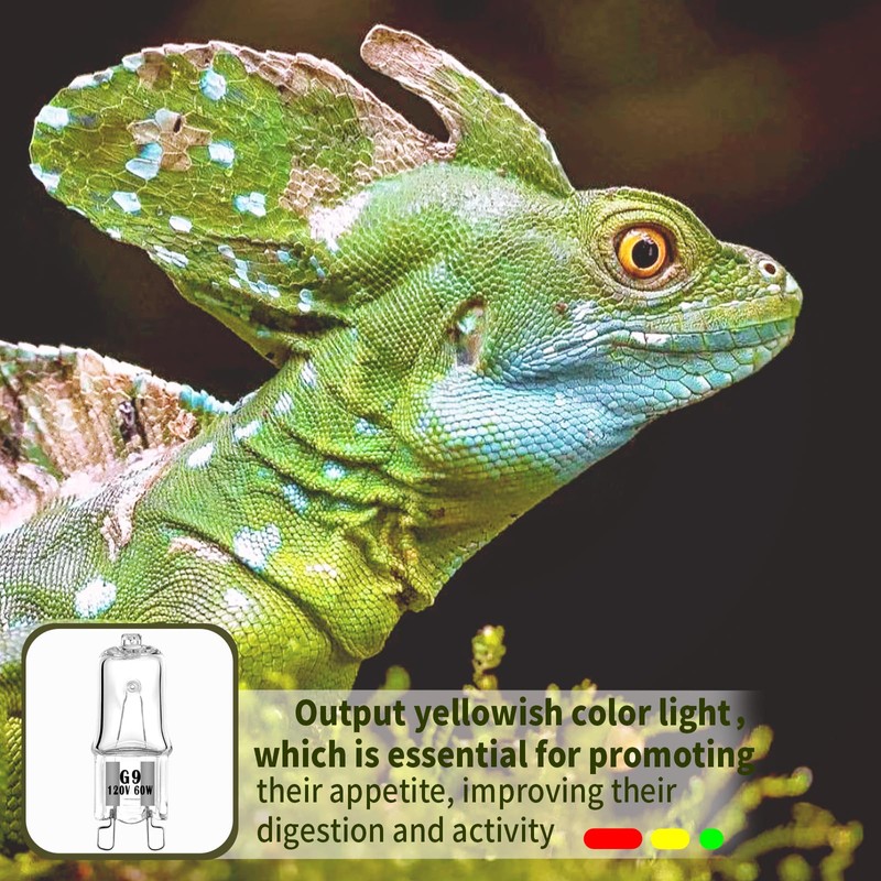 - PROVIDE Reptiles with the Heat They Need :This G9 reptile heat bulb provides reptiles with the heat they need, output yellowish color light, which is essential for promoting their appetite, improving their digestion and activity !