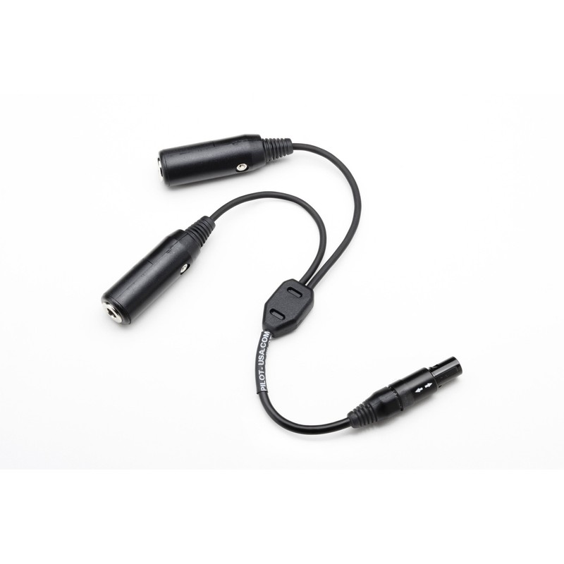 This GA Headset to Bose (6 Pin Lemo) Adapter converts a dual plug GA headset to a single BOSE (6 Pin Lemo) connector. Item Number PA-93B