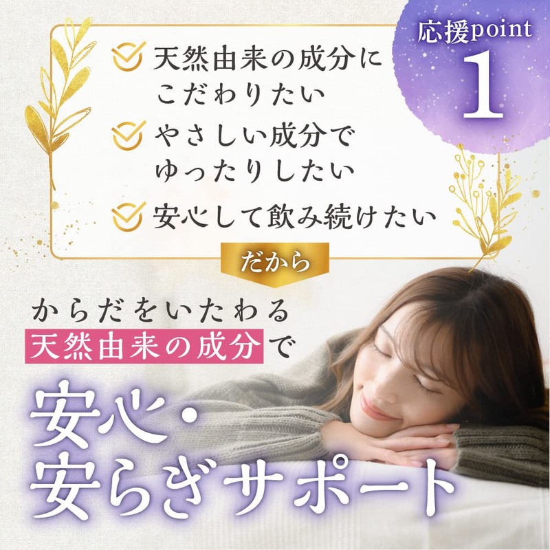 - 4種の休息アミノ酸(GABA、グリシン、L-トリプトファン、L-テアニン)を配合