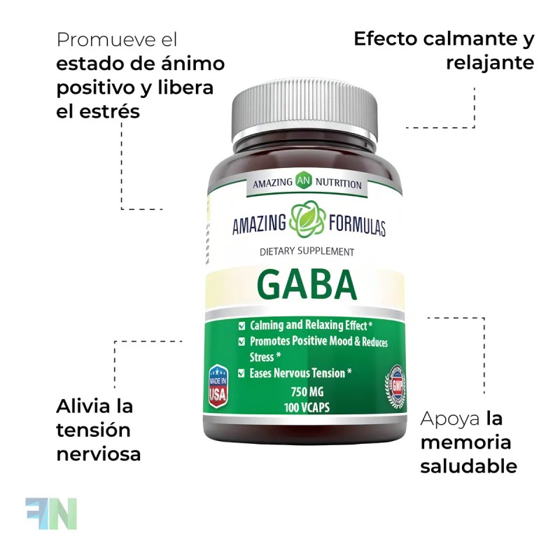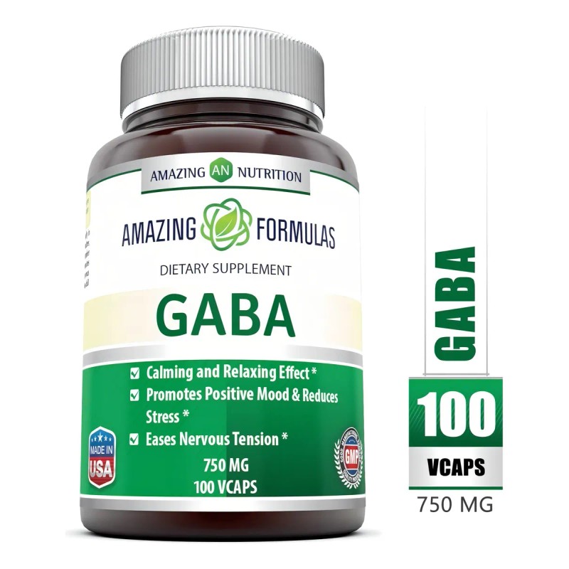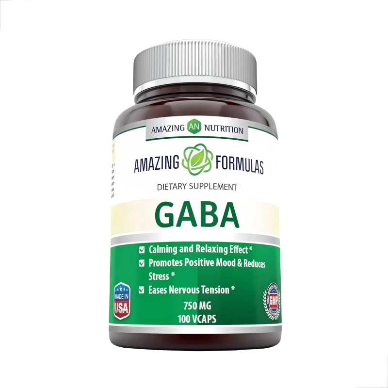 GABA 750 mg – Suplemento natural que reduce la ansiedad, el estrés y mejora la calidad del sueño. 100 cápsulas de alta potencia. Ideal para relajarte, enfocarte y equilibrar tu mente.