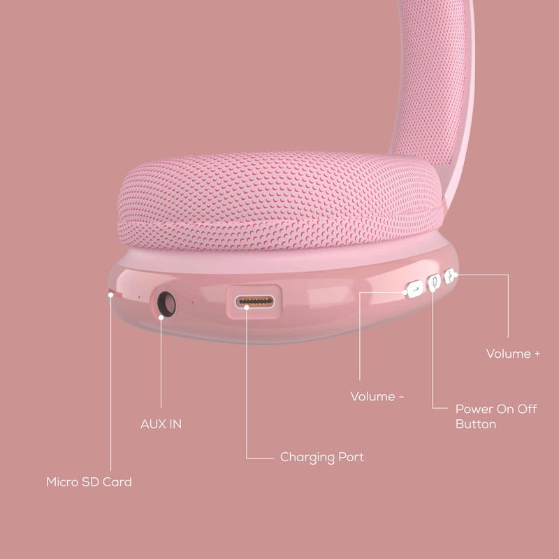 Gabba Goods Wireless Over Ear Bluetooth Headphones with Microphone - Wireless Headset -Noise Reduction - Bluetooth, Wired,Built in Micro SD for Travel, Home, Work TV,PC,Gaming,Cellphone (Pink)