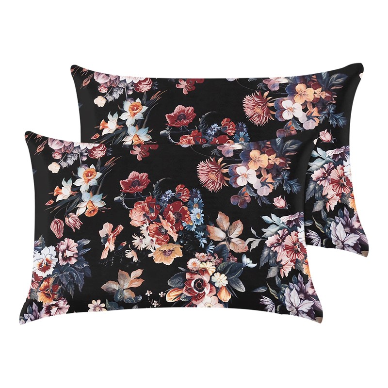 GABraden Microfiber Pillow Cases Standard Size 2PCS Set with Hidden Zipper,Soft and Comfortable Fabric Pillowcases,Lightweight and Breathable,Easy to Clean,Standard Size 20"X 26" (Black-Flower)