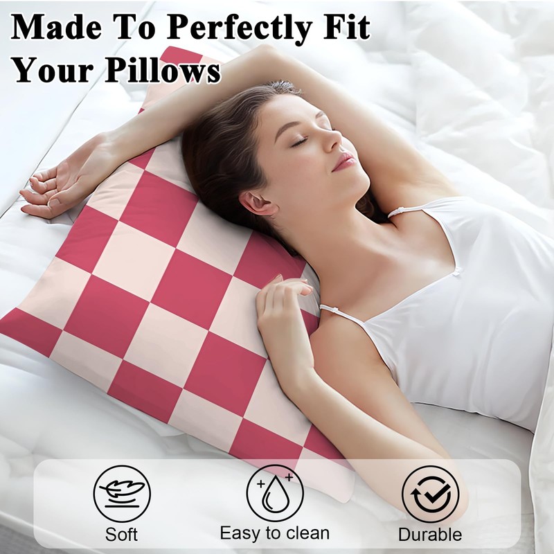 GABraden Microfiber Pillow Cases Standard Size 2PCS Set with Hidden Zipper,Soft and Comfortable Fabric Pillowcases,Lightweight and Breathable,Easy to Clean,Standard Size 20"X 26" (Pink-Checkered)