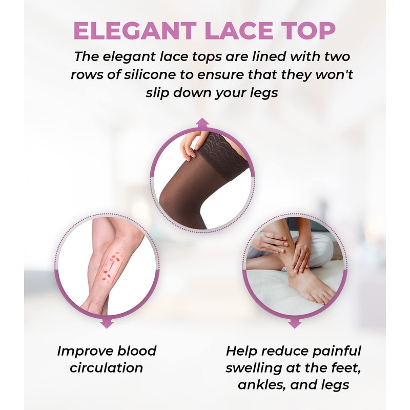 - BEAUTIFUL DESIGN - Lace top with three silicone bands to secure them in place on the thigh.