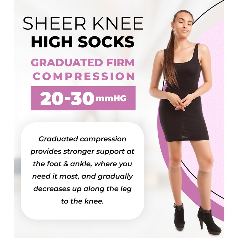 GABRIALLA Sheer Knee High Compression Socks for Women, Medical Grade Calf Knee Highs, Graduated Firm Compression 20-30 mmHg, Improve Blood Circulation, Prevent & Treat Varicose Veins, Closed Toe
