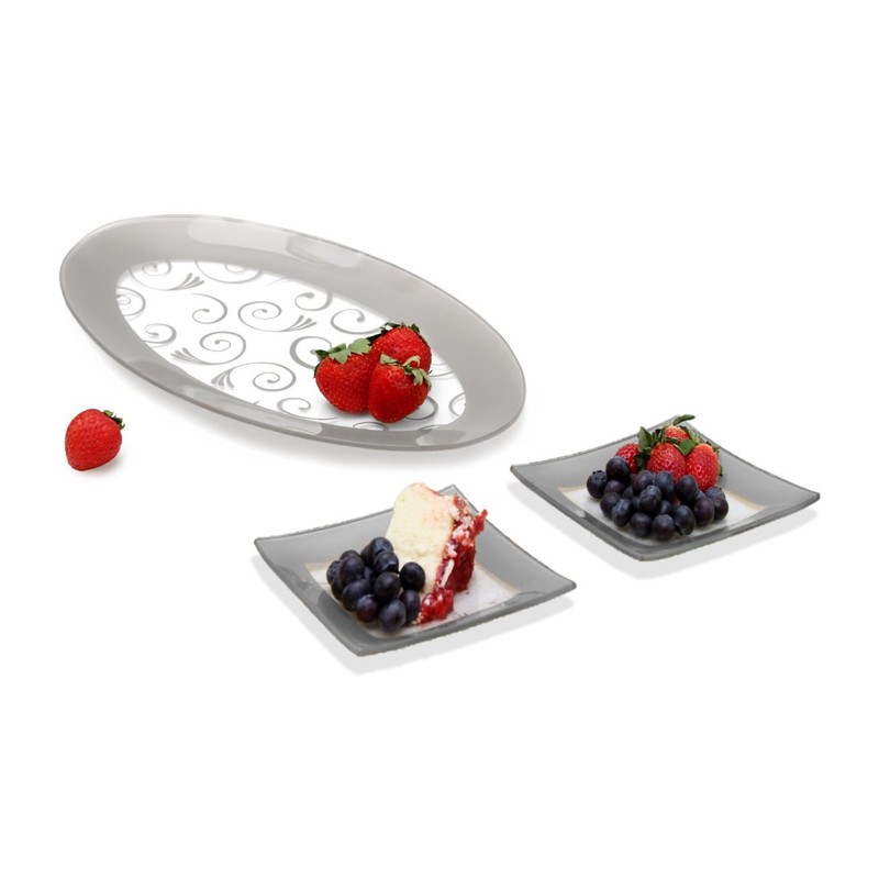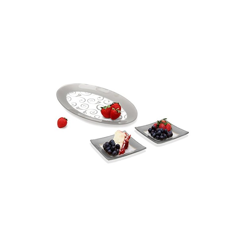 Chip resistant The silver decorative plate set will not chip with heavy use. Perfect glass serving tray for daily use and hosting.