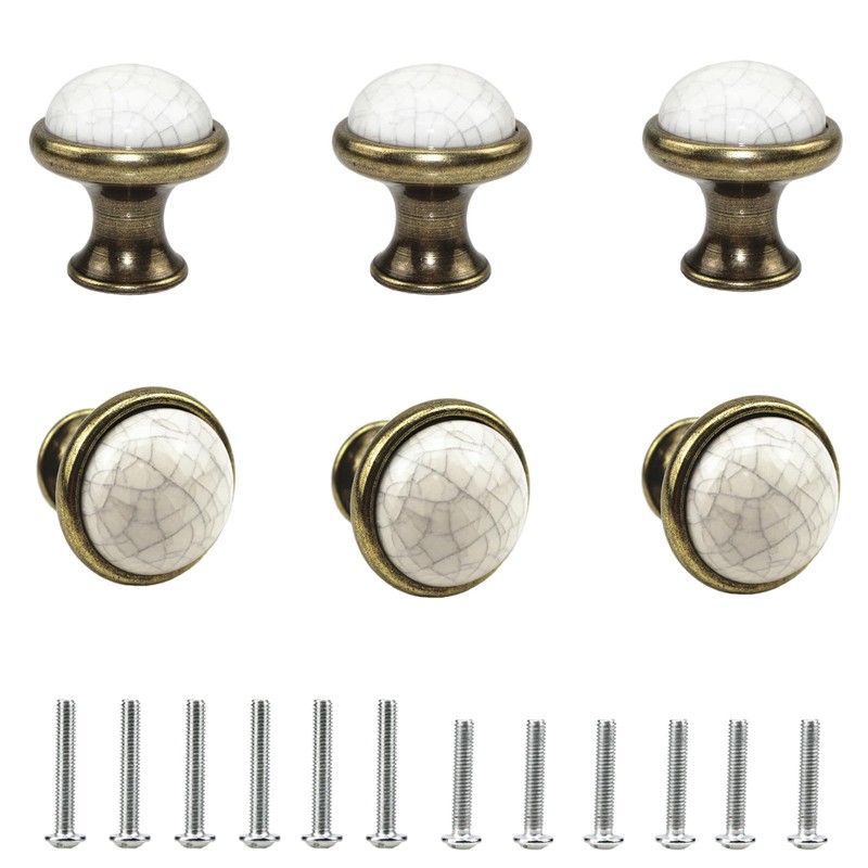 Gad2go 6Pcs Cabinet Knob Vintage Ceramic Drawers Knobs 34mm Round Knob Pull Handle for Furniture Kitchen Cabinet Cupboard Drawer