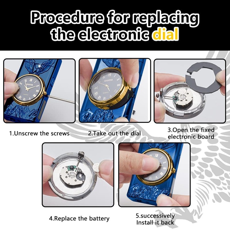 - 【Exquisite Design】:The appearance of this lighter is engraved with exquisite relief, dazzling clock, led lighting, blue cat's eye stone, noble and luxurious appearance is more eye-catching, bottom lighting, no fear of darkness.