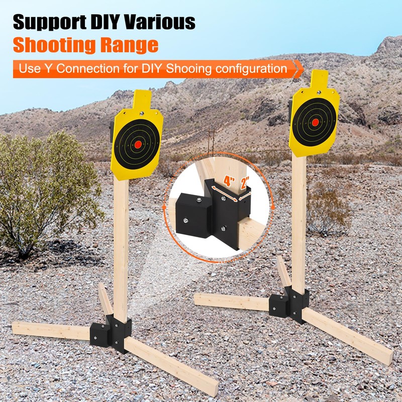 - 2 x 4 Modular Shooting Range Kit - The shooting target hanger set comes in 2 Y Base Connectors, 2 T Horizontal Connectors, 12 Target Hangers and hardware accessories. Note: 2 x4 wood stakes and shooting targets are NOT Included.