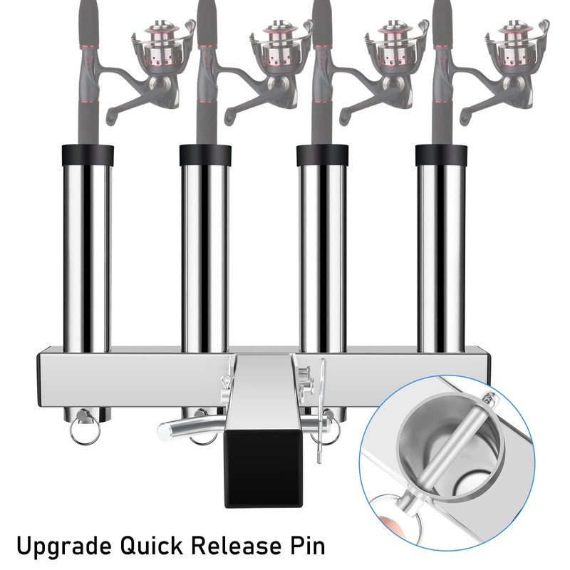 Stainless Steel Hitch Fishing Rod Holder, GADFISH Hitch Mount Rod Holder, 4 Link Tube for 2" Hitch Receivers with Quick Release Pin,Truck Adjustment Fishing Rod Rack, Fishing Pole Holder