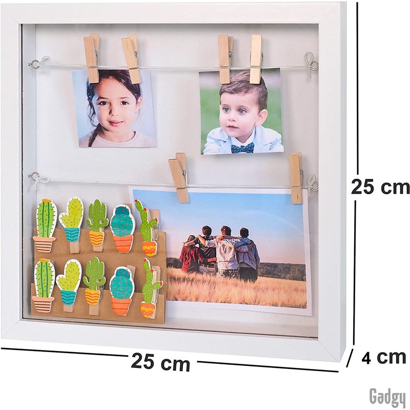 Gadgy Shadow Box Frame with 18 Clips | 10 x 10 Inch. | Picture Box White | 3D Frame | Box Frame for Crafts 3D Deep | Deep Box Frame | Box Picture Frame | Deep Photo Frame