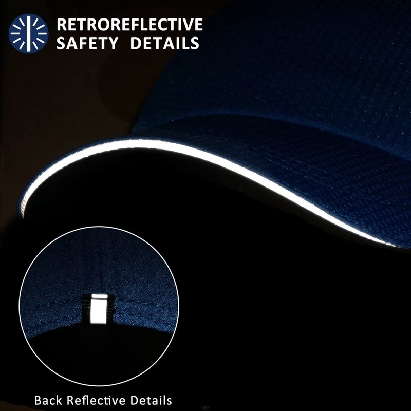 - Retroreflective Safety Details: This cool sports cap for women features a stylish reflective ‘sandwich’ trim (also a small reflective details appears on the back) that enhances visibility and safety during those early morning and late afternoon running workouts