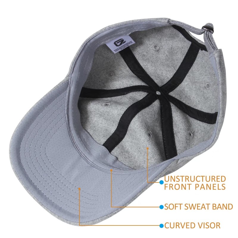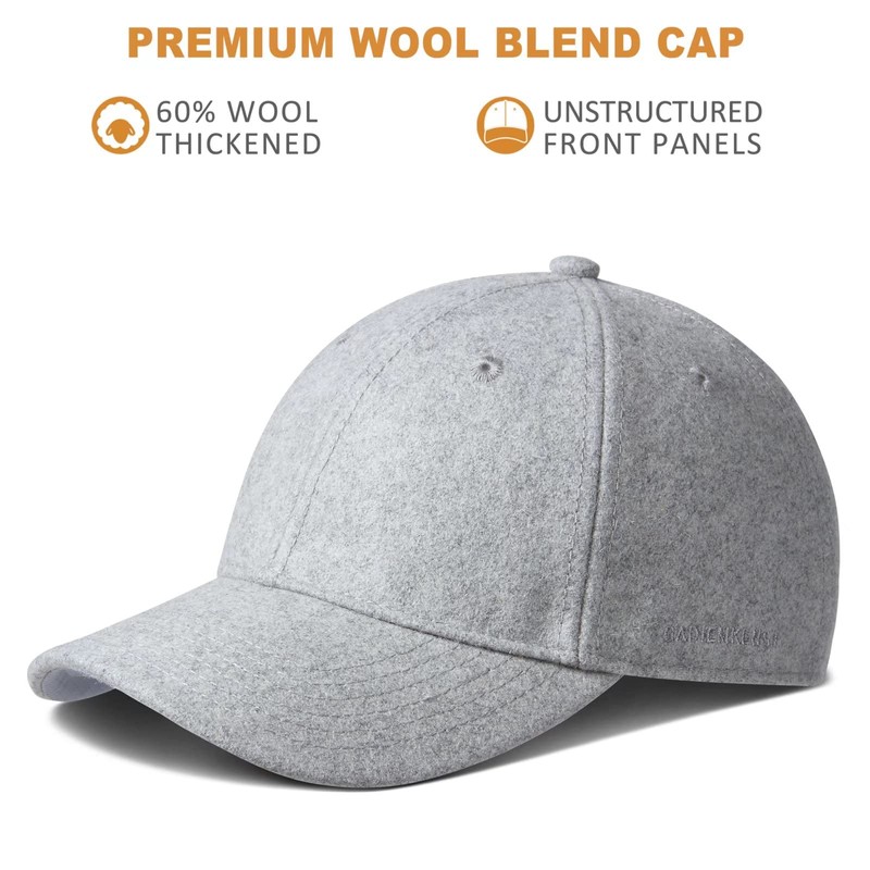 - WOOL BLEND BASEBALL CAP: Premium wool blend, curved visor, 6-panel relaxed traditional silhouette, 6 embroidered eyelets for breathability.