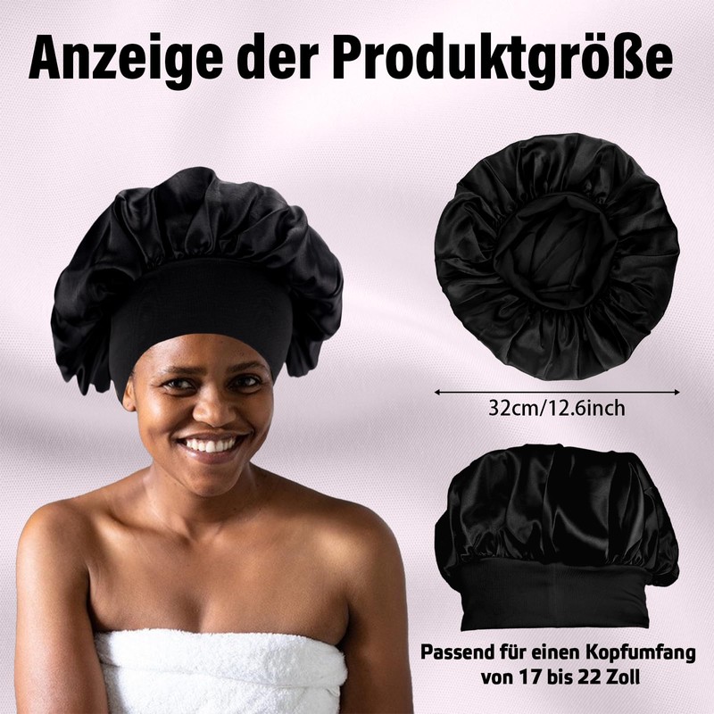 - Size: the satin hair cap is 32cm in diameter and equipped with an elastic band. It is suitable for head circumference from 43 to 56 cm and suitable for most head shapes. It effectively wraps the hair and provides a comfortable fit that does not exert pressure on the forehead and maintains a pleasantly loose feeling. The anti-slip design and headband together ensure that the headscarf does not fall off easily during sleep and does not affect your sleep quality.