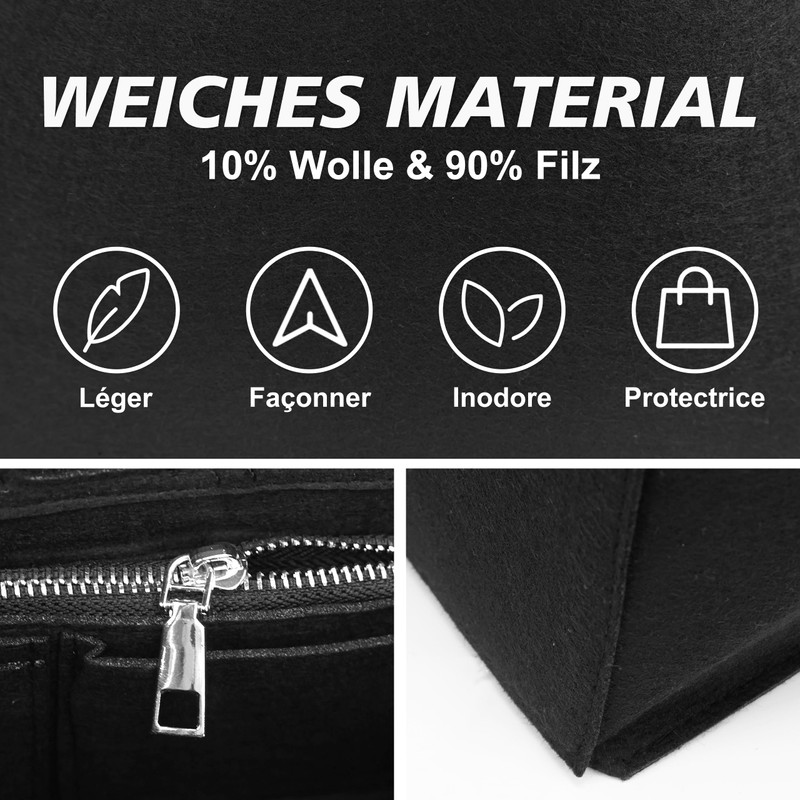 - High-quality material: the felt purse organiser is made of high-quality and brand new felt fabric, the adjustable shoulder strap for bags are made of high-quality leather, soft and comfortable, wear-resistant and durable. Thick felt fabric better protects the contents of your handbag. The hardware accessories are hand polished and four layer electroplated to ensure exquisite durability and not scratch your expensive and beloved bag.