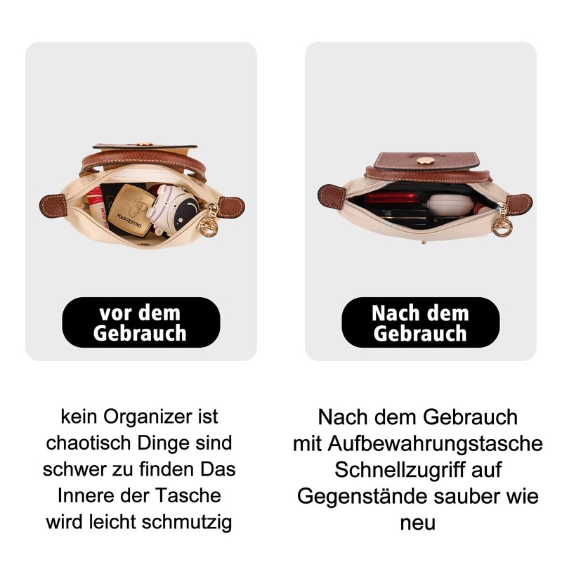 - PROTECTION AND STRUCTURE With the Longchamp organizer, your handbag will stay in shape and your items well protected. It prevents slipping and ensures that everything stays in place.