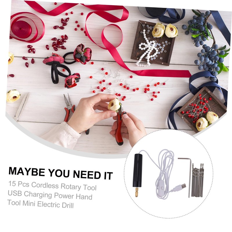 Gadpiparty 15 Pcs Mini Electric Drill Kit USB Handheld Rotary Tool for Tile Engraving Ergonomic Design with Multiple Accessories for DIY Projects