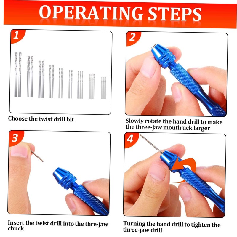 - Rotary tool dril--you can use the hand drill bits set to assemble electronice, make models, wind, make crafts and so on,manual work drill