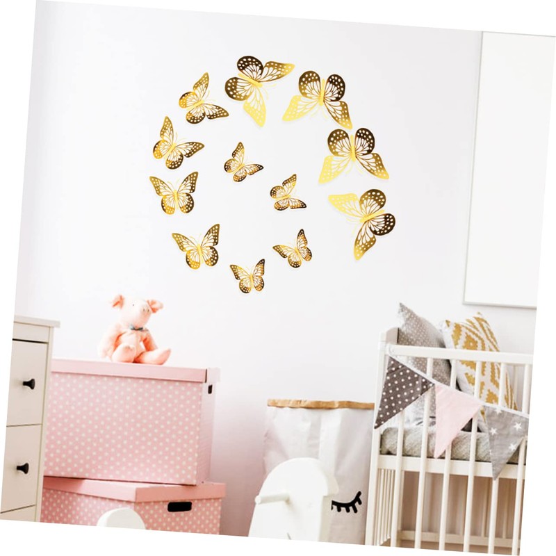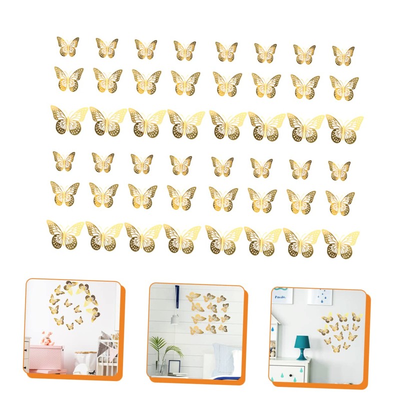 Gadpiparty 48pcs Hollow Butterflies Wall Decals Gold Butterflies Ornament for Boys and Girls Room