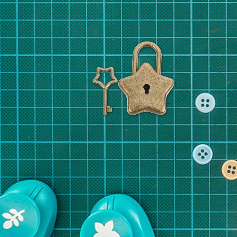 Gadpiparty Lock Antique Brass Padlock with Key, Vintage Star Shape Anti-Theft Mini Padlock Bag Travel Suitcase Luggage Box Cases Key Keyed Padlocks
