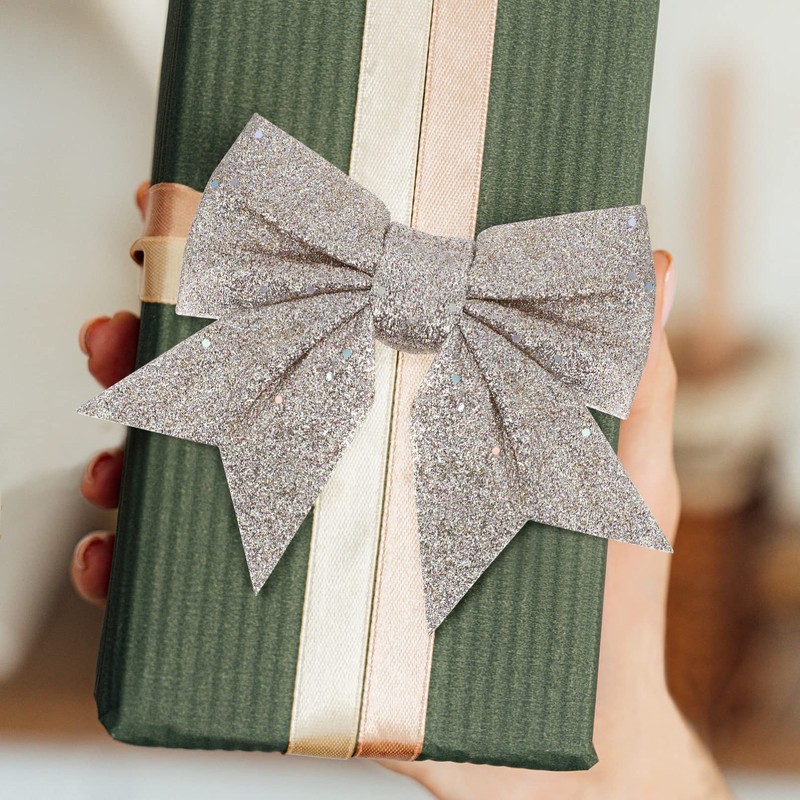 Gadpiparty Pack of 8 Christmas Bow Glitter Christmas Wreaths Bows Ties Party Decorations Bows Pendants Crafts for Christmas Tree Christmas Holiday Decoration 12 7 cm