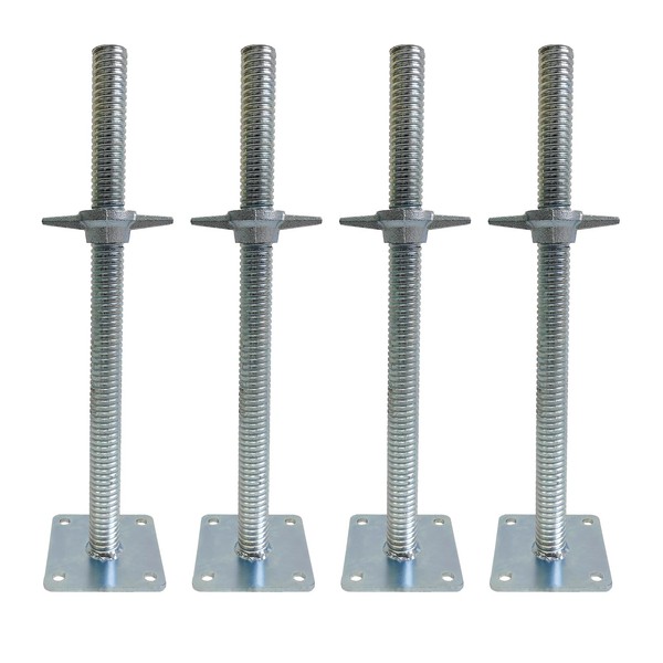 GaeaAuto 4 Pack Adjustable Leveling Jacks Feet Screw Jacks Hollow with Base Plate for Baker-Style Scaffolding Equipment, Silver