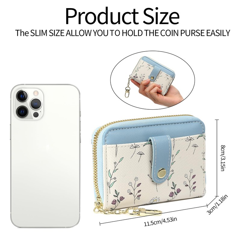 - Lightweight mini zip purse: this mini coin purse is 4.53 X 3.15 X 1.18 In. Small and portable, it's only the size of a palm and you can carry it in your hand or in your bag. Fits into pocket easily and is roomy enough for all your needs