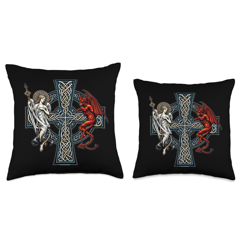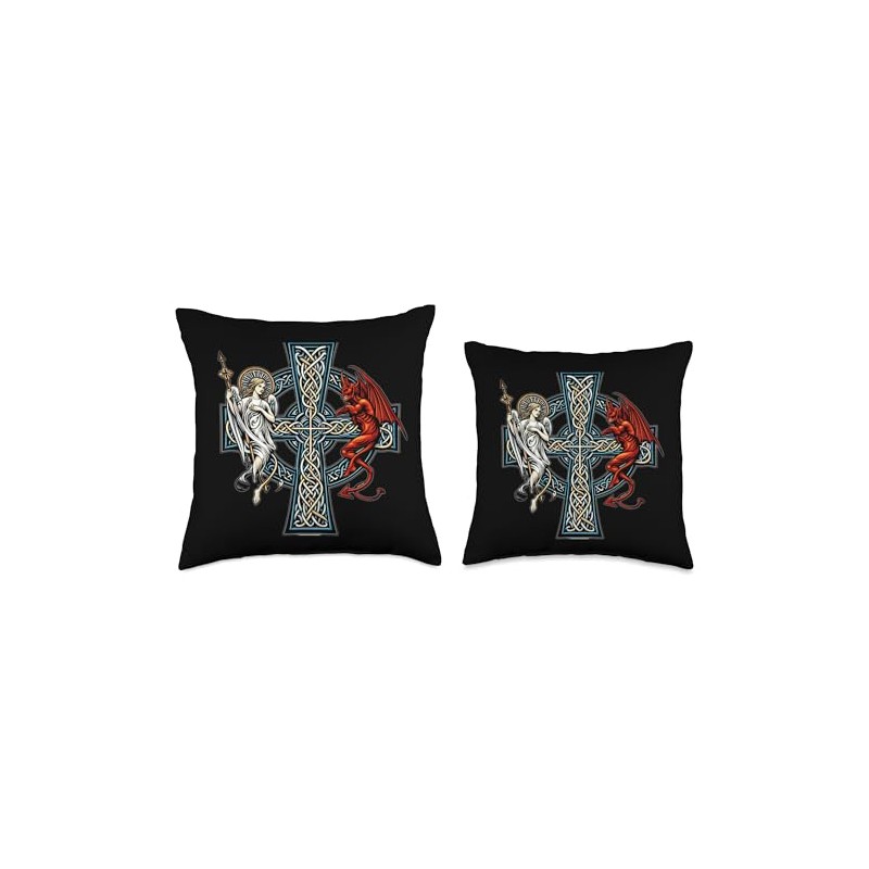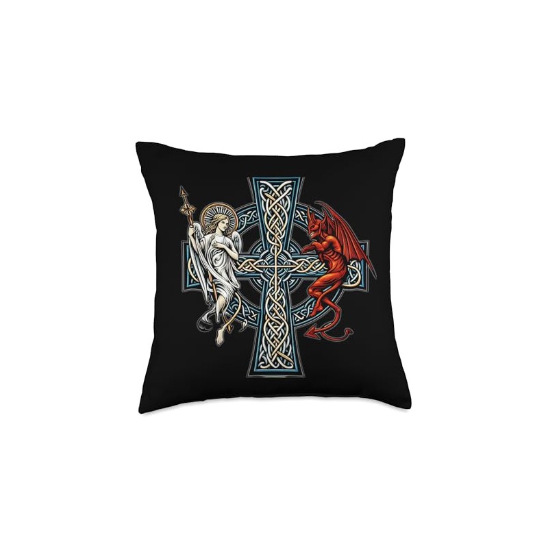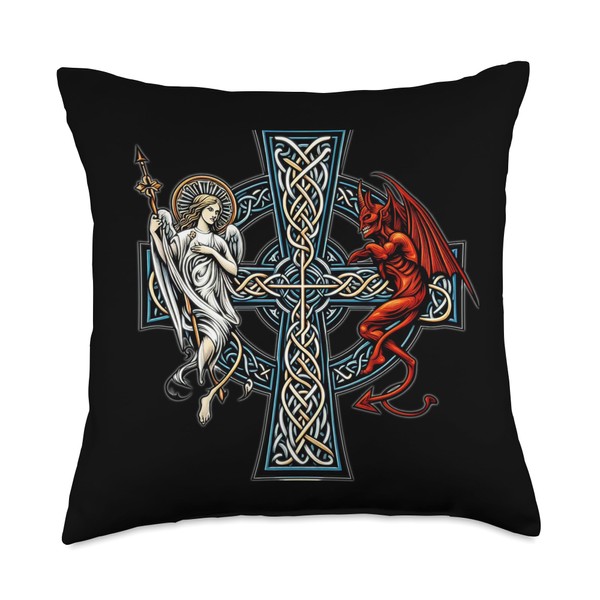 Gaelic Religious Design Celtic Cross Good Evil Angel Devil Irish Throw Pillow...