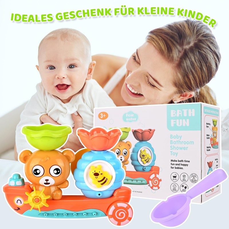 - Bath toy for children: This bath toy provides fun entertainment and helps to calm your baby while bathing. Pour water over the toy and watch the cute bear splash water out of his mouth, the bees spin and the gears spin to create an enchanting waterfall. Perfect for bathing enthusiasts from 6 months