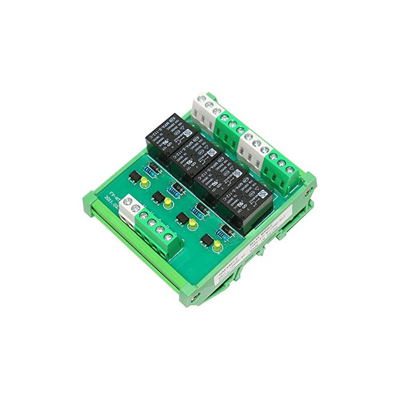 GAEYAELE 4 Channel 1 SPDT DIN Rail Mount 12V 24V DC/AC Interface Relay Module (FY-T734-12VACDC)