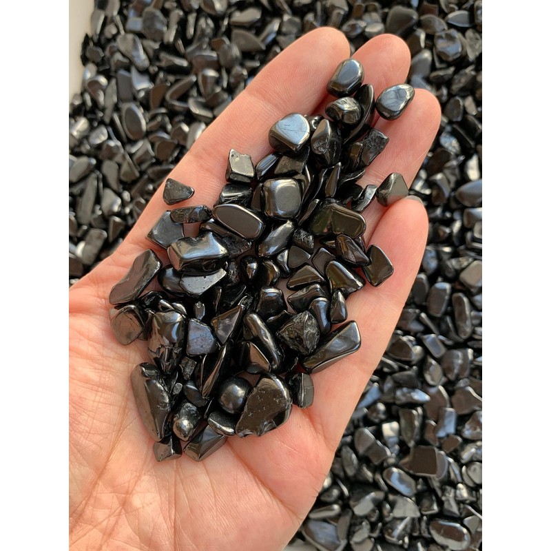 GAF TREASURES Shungite Chips C Natural Mini Shungite Stones, Crushed Undrilled Shungite, Semi-Tumbled Genuine Shungite (1/4 lb)