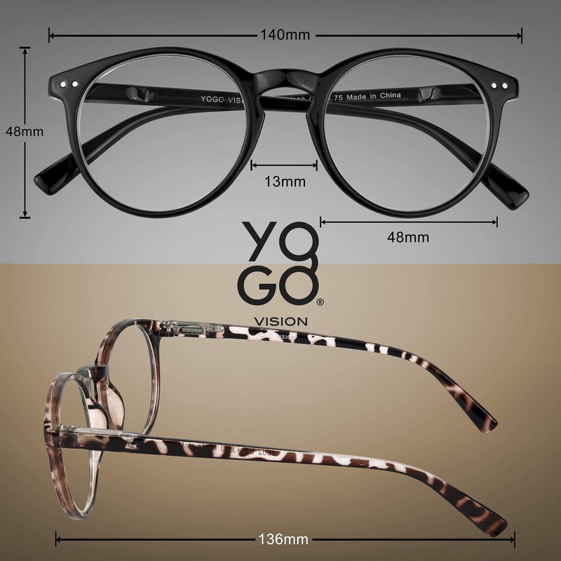Gafas redondas de lectura para mujer, 4 unidades, Negro, Cristal, Gris Leapord, Marrón Havana, Mediano
