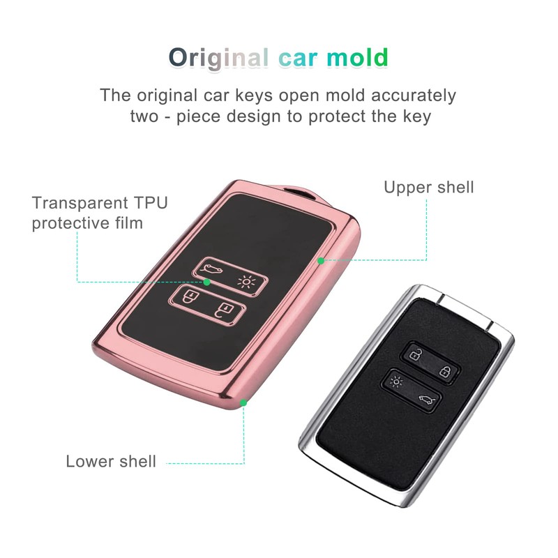 GAFAT 2020-2025 Renaul-t Clio 5/Captur 2/Megane E-Tech/Austral/Arkana/Zoe Key Case, 2016-2024 Clio 4/Megane 4/Kadjar/Koleos Protective Case, Key Case, TPU Silica Gel (Pink)