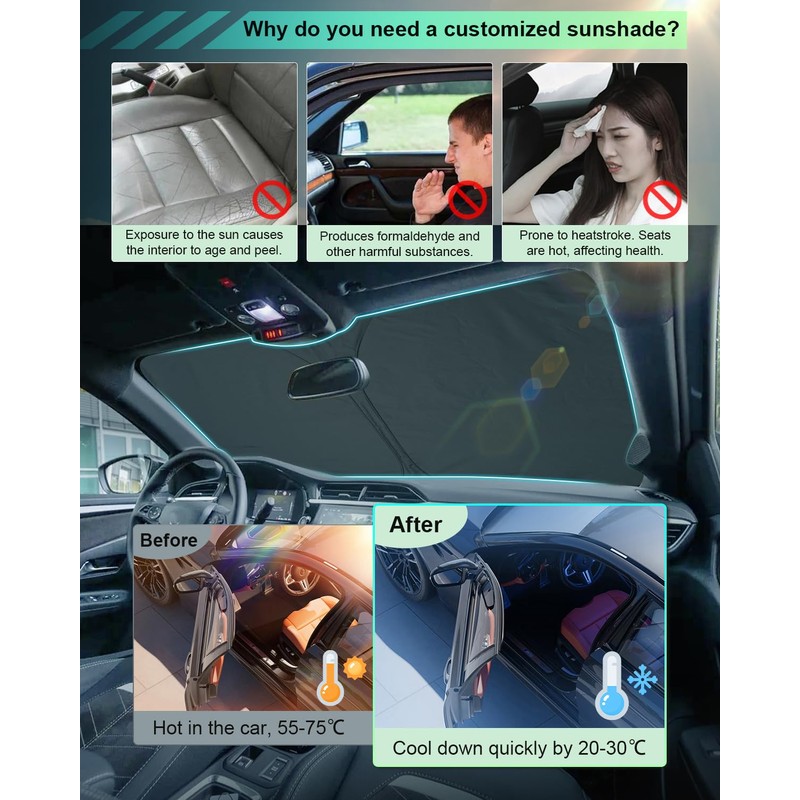 The shading effect is up to 99%. Effectively prevent the temperature rise in the centre console. Protects interiors from aging and reduces repair and replacement costs