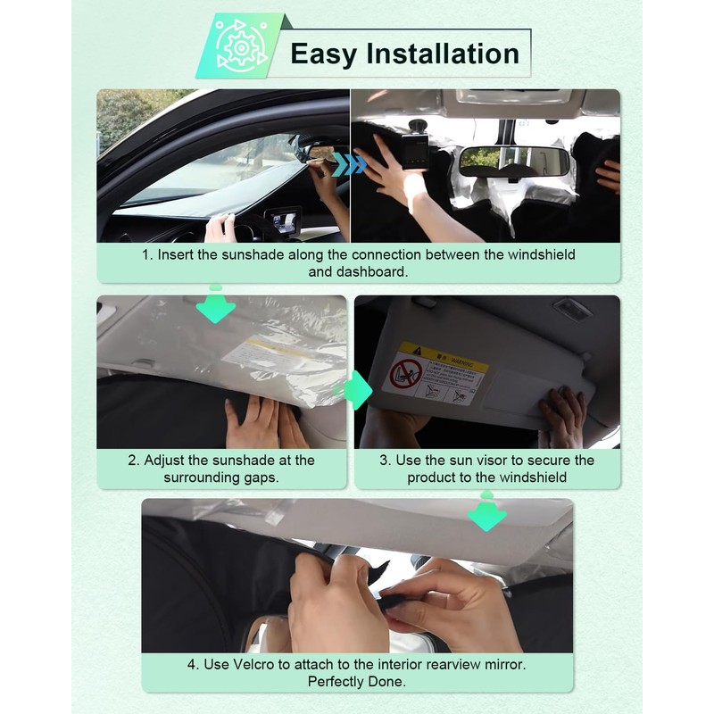 - Quick installation and removal: no need to use suction cups. Simply snap on with 2 visors. It is easy to disassemble and can be packed and placed after folding twice, making it flexible to use.