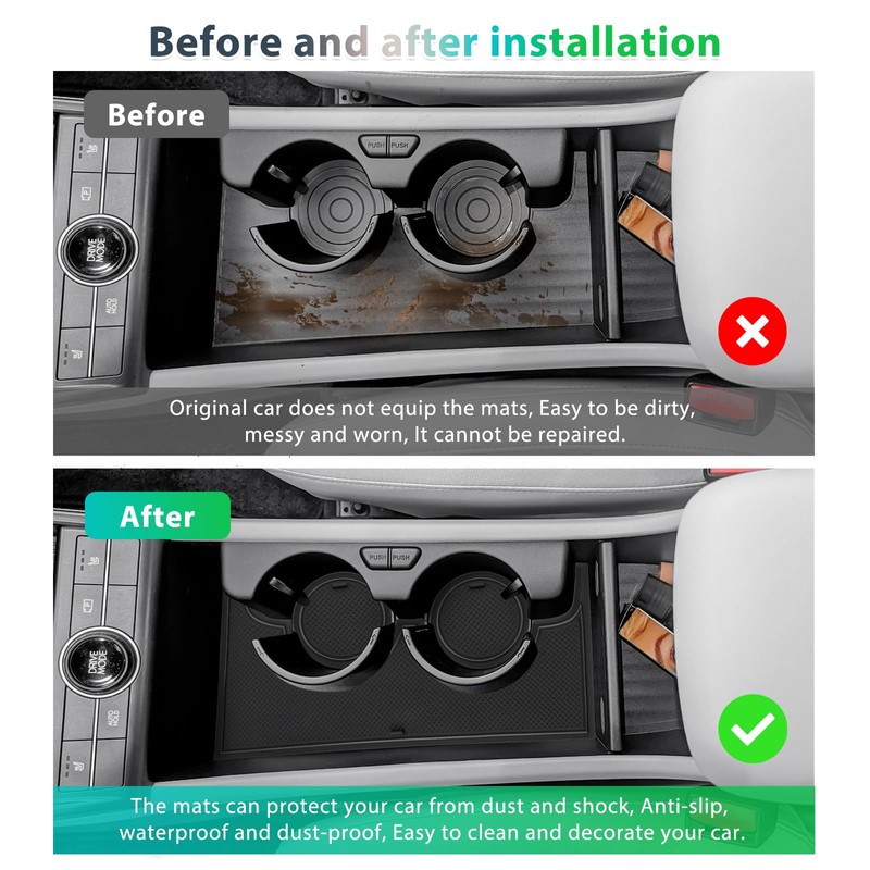 - Comprehensive protection for your car: These mats are used in different vehicle interiors to protect the centre console, armrest box, cup holder, door seams and other parts from damage caused by liquids or sharp objects and thus effectively keep the interior of the vehicle clean and tidy, reducing the maintenance or replacement costs of the vehicle.