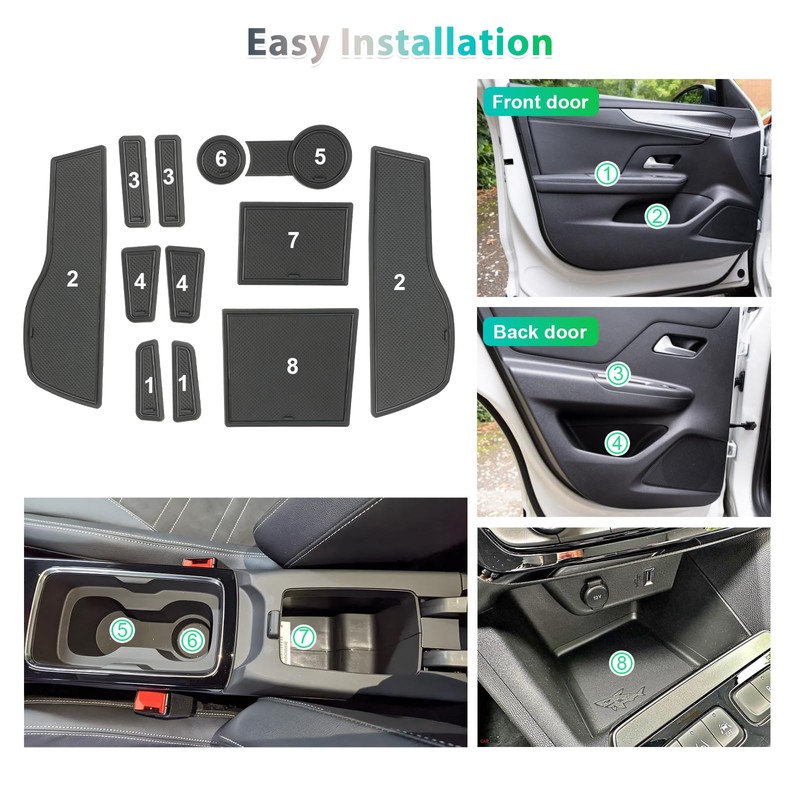 GAFAT Compatible with Opel Mokka B Mokka-e 2021-2024 2025 Non-Slip Mats, Mocha e Rubber Mats Non-Slip Non-Slip Centre Console Door Seam Mats, Mocha B Accessories (Black)