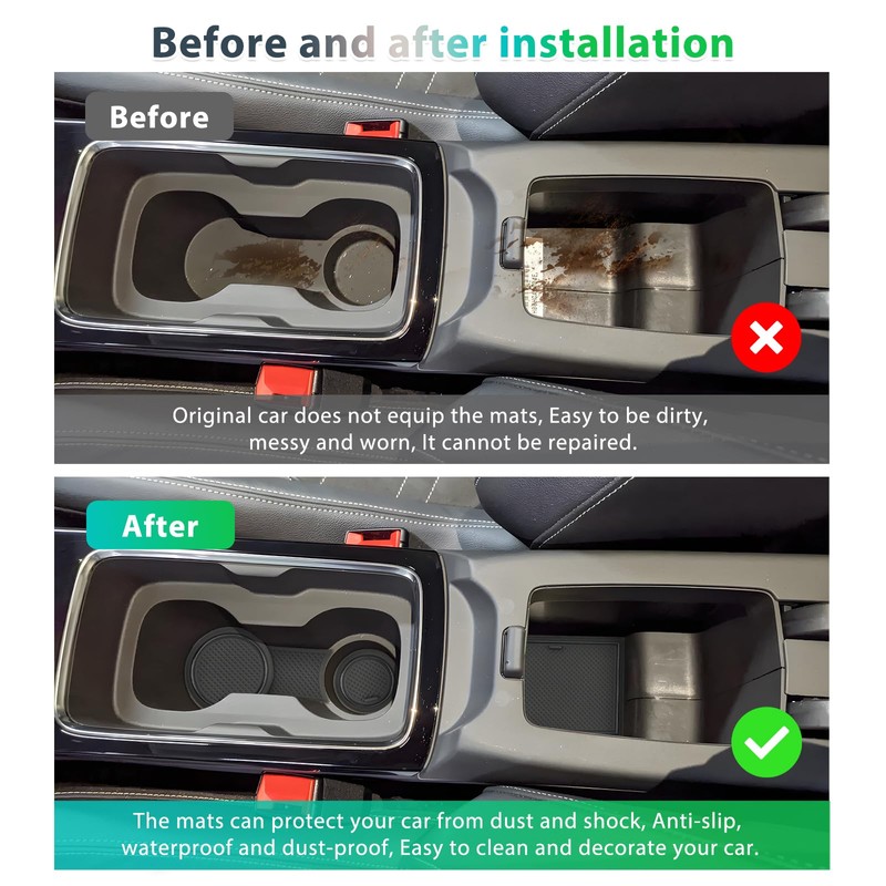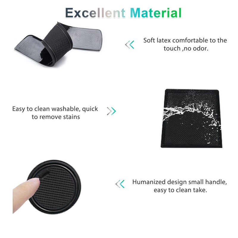 - Strong slip resistance, improve driving safety index: The surface is equipped with a dense concave-convex grid structure to reduce sliding and friction noise from objects such as mobile phones, keys and sunglasses. The bottom is sticky and non-slip, so the mat stays in place even during sudden vehicle stops or cornering.