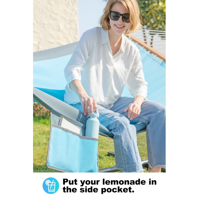GAFETE Waterproof Double Hammock with Stand for Outside Heavy Duty, 2 Person 55'' Large Quick Dry Textilene Hammocks with Hardwood Spreader Bar, Pillow, Side Pocket, 475lbs Capacity (Sky Blue)