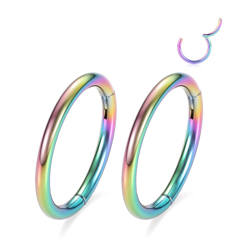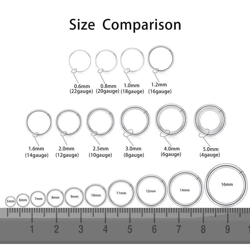 - Size and Color: Gauge: 14 gauge (thickness: 1.6 mm). Inner diameter: 6 mm. Color: Rainbow. Please check the inside diameter carefully according to the size chart of the hoop nose ring