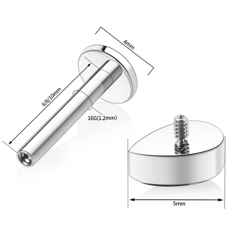 - Size: Gauge: 16 G(1.2 mm); Barbell Length: 1/4"(6 mm); Top Size: length:5 mm