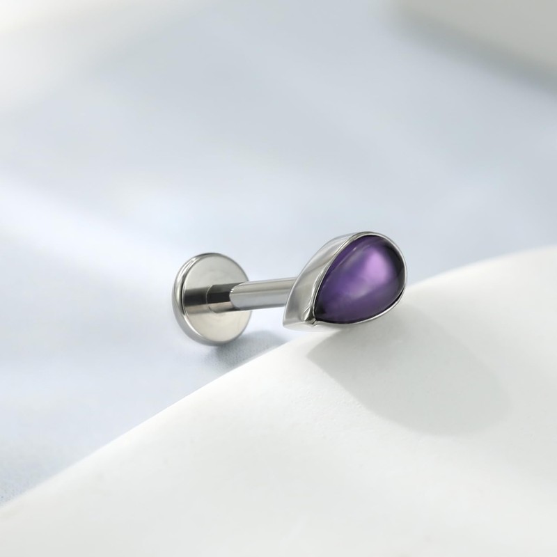 GAGABODY G23 Titanium Labret Studs 16G Tragus Earring 16g Helix Stud Internally Threaded Labret Water Drop Amethyst Tragus Piercing Cartilage Monroe Lip Piercing Silver Lip Studs 6mm