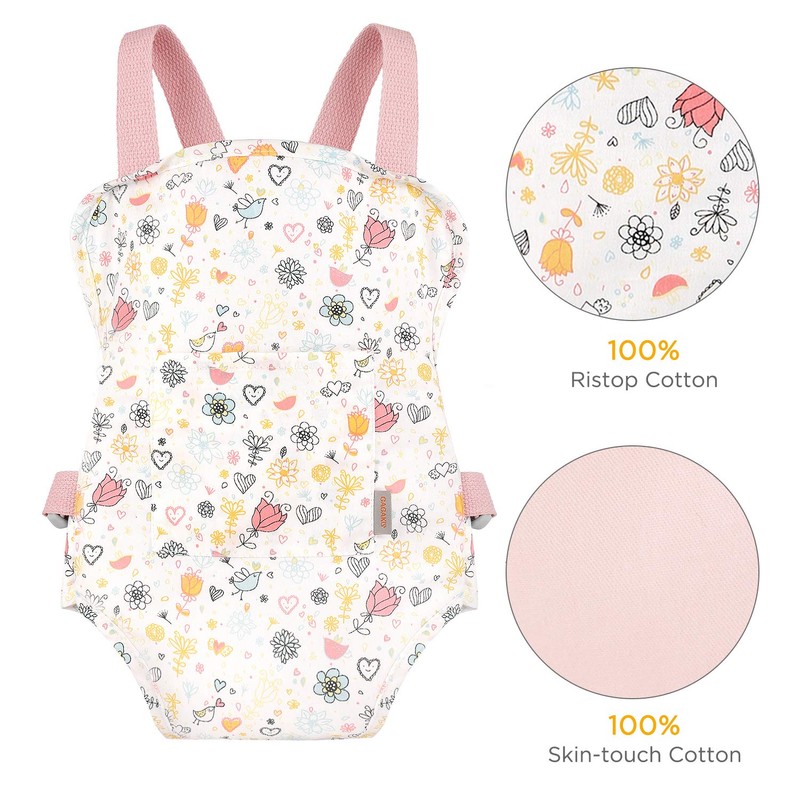 GAGAKU Doll Carrier Soft Cotton Front and Back Carrying with Adjustable Straps for Baby, Rose Garden