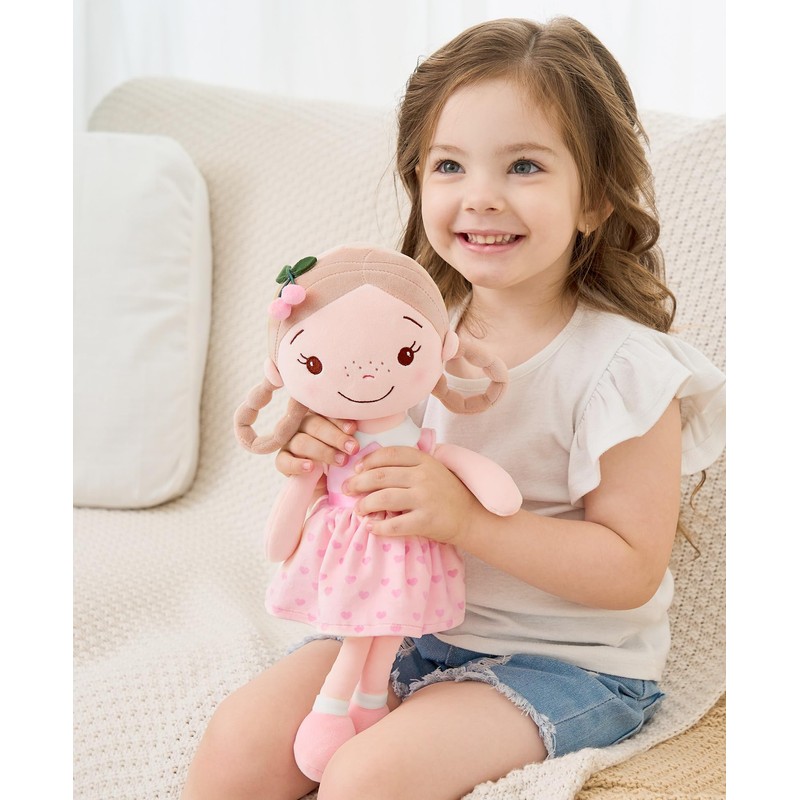 GAGAKU GAGAKU Weiche Stoffpuppe 40cm Schutzengel Puppen, Taufgeschenk für Baby Mädchen Kuscheltier Glücksbringer für Kinder im Alter von 3-5 Jahren-Kirschmädchen