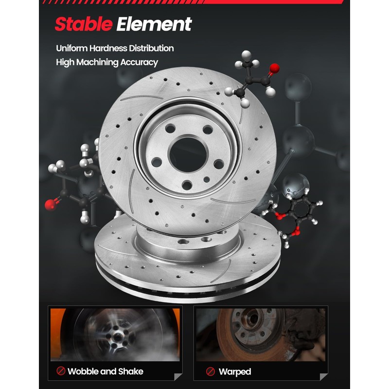 - Uncompromised Quality and Value: Built to last, these brakes and rotors kit front and rear combines high-quality engineering with affordability, ensuring you get the high performance you need without overpaying. Enjoy the value of top-tier braking power that doesn't cut corners on safety.