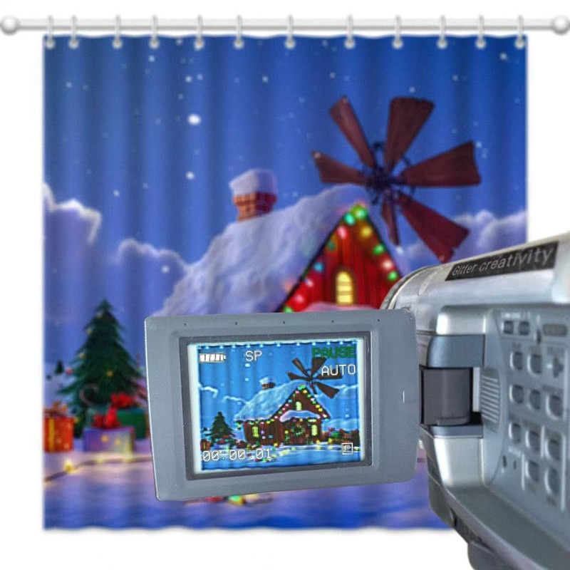 Gaietya Christmas Shower Curtain Red House Windmill Xmas Tree Snowflake Bathroom Decor with 12 Hooks 72"x72"