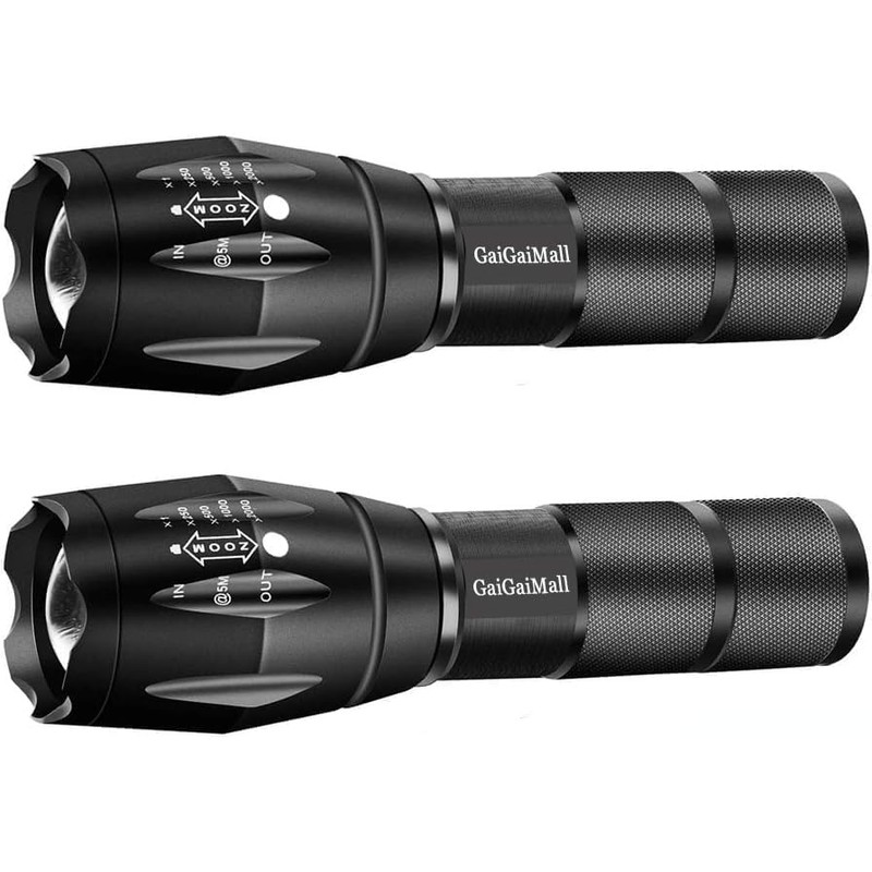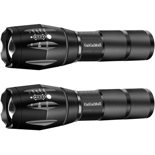 GaiGaiMall Military Grade Tactical LED Flashlight 3000 Lumen Torch with 5 Light Mode, Zoomable, Water Resistant (2Pcs) (2pcs)